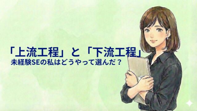 就活ノウハウ 【職種研究】企業選びで迷う「上流工程」と「下流工程」未経験の私はこうやって選びました 2026年1月23日 pm.se.career@gmail.com 結城まな こんにちはプロジェクトSEの仕事図鑑へようこそ! 私はプログラミング未経験で、大手IT企業に入社しました。現在はプロジェ …