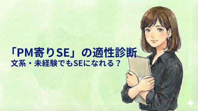 就活ノウハウ 文系・未経験でもSEになれる?PM寄りSEに向いている人の特徴と適性診断 2026年1月27日 pm.se.career@gmail.com 「未経験の私でも、IT業界で本当についていけるのかな……」 かつて、プログラミング経験ゼロの就活生だった私が、毎日のように抱いていた …