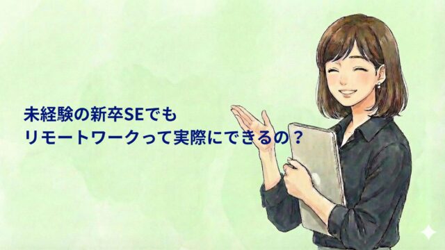 働き方・キャリア 未経験の新卒SEでもリモートワークって実際にできるの? 2026年1月5日 pm.se.career@gmail.com 結城まな こんにちはプロジェクトSEの仕事図鑑へようこそ! プログラミング未経験で、大手IT企業に入社しました。現在はプロジェクト …