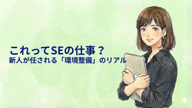 SEの仕事解剖 「これってSEの仕事?」新人が最初に任される地味すぎる「環境整備」の重要な意味 2026年1月16日 pm.se.career@gmail.com 結城まな こんにちはプロジェクトSEの仕事図鑑へようこそ! 私はプログラミング未経験で、大手IT企業に入社しました。現在はプロジェ …