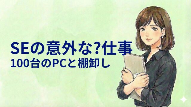 雑記 SEって何してるの?PC100台の「棚卸し」で見えた意外なリアル 2026年2月4日 pm.se.career@gmail.com 結城まな こんにちはプロジェクトSEの仕事図鑑へようこそ! 私はプログラミング未経験で、大手IT企業に入社しました。現在はプロジェ …