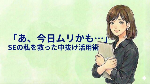雑記 「あ、今日ムリかも」を救ってくれた、SEの『中抜き』という働き方 2026年2月6日 pm.se.career@gmail.com 結城まな こんにちはプロジェクトSEの仕事図鑑へようこそ! 私はプログラミング未経験で、大手IT企業に入社しました。現在はプロジェ …