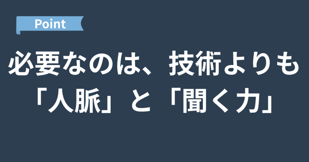 「相手の発言の裏にはどんな困りごとがあるのか?」を深く考えたり、相手に合わせて伝え方を変換したりするコミュニケーション力が必要です。