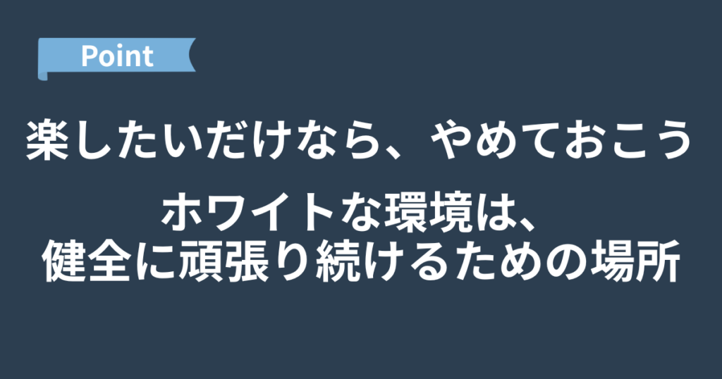 私にとっても、「働き方(ホワイト環境)」は絶対に譲れない条件のひとつだったのです。
